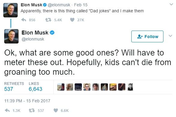 The best thing about this superhuman is that he’s not just about the work. From tweeting about his artistic talent, to when he made Snoop Dug a thing, and quite literally being the dad of all dad jokes, Musk just knows how to keep his audience entertained and engaged.